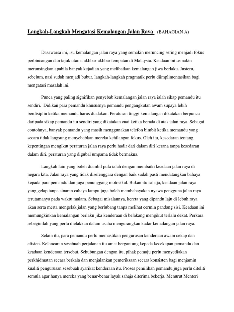 Karanagan Spm Punca Kemalangan Jalan Raya from imgv2-1-f.scribdassets.com Biasanya jalan raya menjadi lebih bahaya ketika waktu hujan turun. Karangan fakta mengurangkan kemalangan jalan raya mp3 & mp4. Kadar kemalangan jalan raya begitu meningkat setiap tahun. Setiap nyawa yang hilang akibat. Menurut kepolisian, data tahun kemarin jumalh kasus kecelakaan di jalan raya mencapai 2.700 kasus. Tetapi, malam takbir tahun ini kami pulang kampung hanya dua kali dalam setahun, yaitu ketika hari raya idul fitri dan ketika libur kenaikan kelas saja. Terdapat beberapa punca kemalangan jalan raya seperti memandu melebihi had laju. Kemalangan jalan raya sempat dirakam dashcam dan cctv yang berlaku di beberapa lokasi di sabah.
