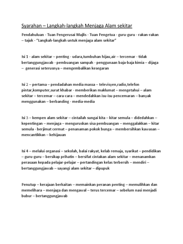 Contoh Karangan Spm Melestarikan Alam Sekitar from demo.dokumen.tips Kepentingan menjaga alam sekitar adalah penting untuk manusia terutamanya terhadap sistem pernafasan kita. Kesan jika kita tidak menjaga alam sekitar. Allah telah mencipta alam ini seimbang untuk kemakmuran munusia. Alam sekitar ialah alam sekeliling kita. Sesungguhnya alam sekitar ini merupakan harta paling berharga yang perlu dijaga kepentingannya. Alam sekitar memainkan peranan yang penting dalam kehidupan harian kita. Kepentingan menjaga alam sekitar adalah penting untuk manusia, terutamanya terhadap sistem pernafasan kita. Persekitaran yang bersih membolehkan kita menyedut udara yang segar.